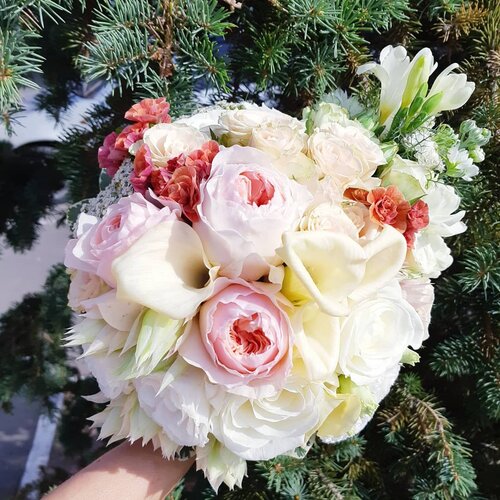 Знакома с мастерской давно.. Заочно, т к живу в другом городе. В те времена редко были оплаты он-лайн, пришлось рискнуть. Просто поговооив по телефону , без фото, сделали уау-компоцицию. До сих пор омтаюсь большой фанаткой этого цветочного .